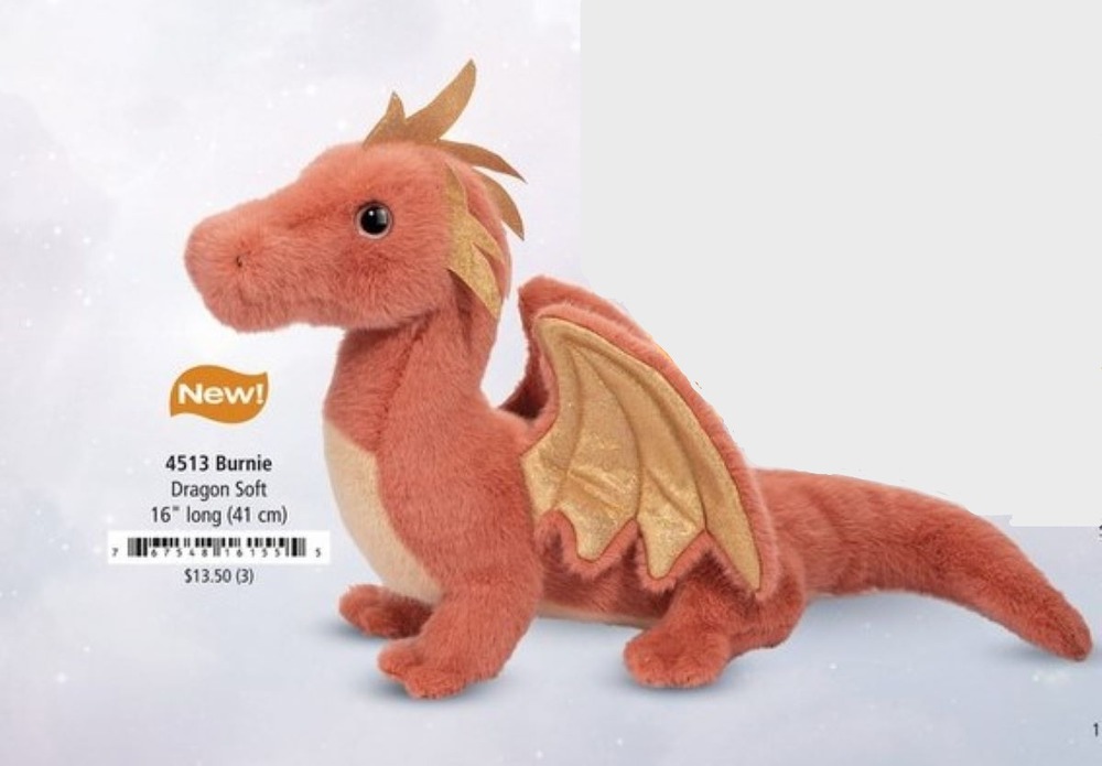 Burnie’s bright coral color showcases her fiery spirit, and shows that she’s always ready for adventure! This plush has been expertly crafted with long-lasting materials and high quality filling to be perfect for both display and snuggle time. Her spiky golden crest and wing details will be sure to dazzle all your friends!