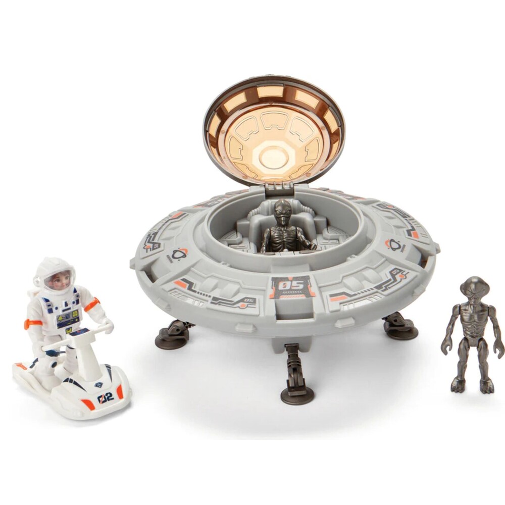 Interactive UFO Features: Opening center capsule and fold-down landing gear enhance storytelling fun.