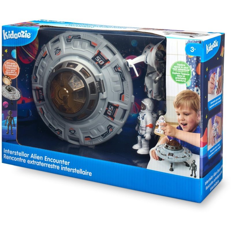 Blast off into intergalactic adventures with the Kidoozie Interstellar Alien Encounter! This exciting set includes everything kids need to create epic space missions—complete with a UFO, 2 aliens, 1 astronaut, and a space sled. The UFO features an opening center capsule for boarding and fold-down landing gear for realistic play. Both the aliens and astronaut have moveable joints, allowing for dynamic action poses and endless storytelling possibilities. Perfect for young space explorers, this set sparks creativity while encouraging imaginative play.