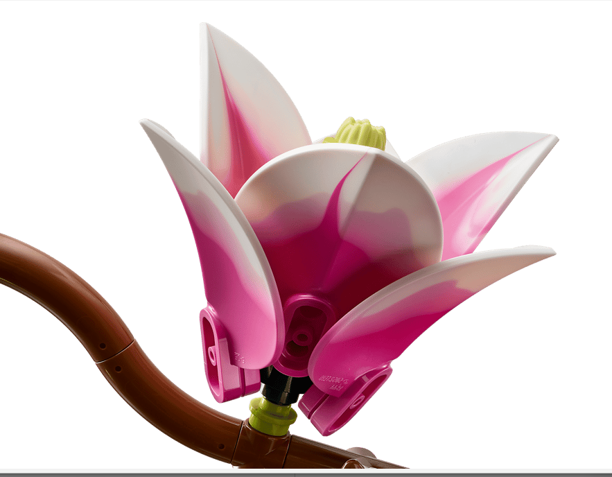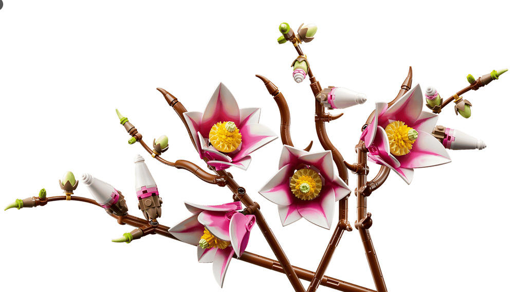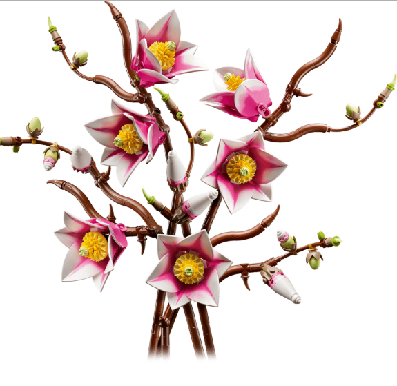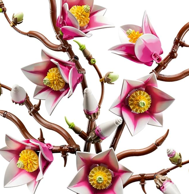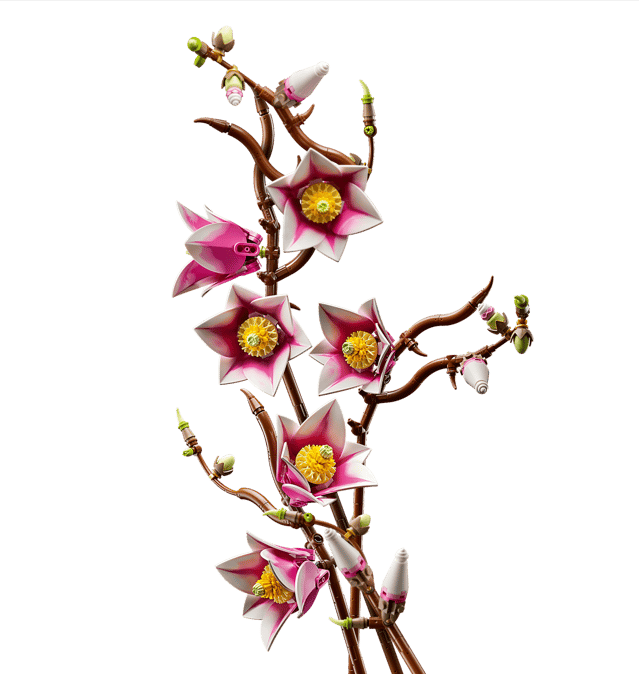 LEGO® MAGNOLIAS – The building kit includes 5 magnolia branches, with 2 of the branches showing the full development of the flower, from the tiny bud to the open petals