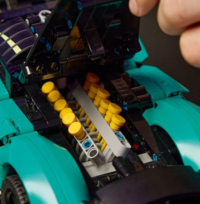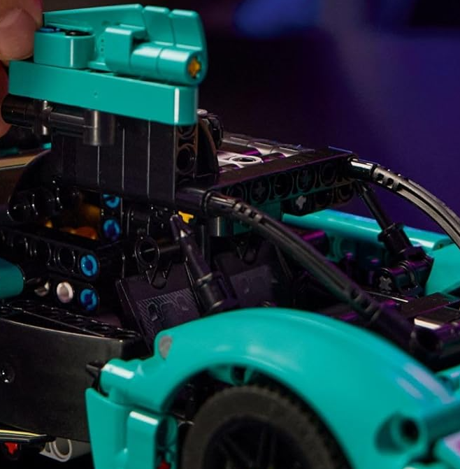 Discover a wealth of features like the steering, which is controlled by a knob on top of the car, and the doors, which open gullwing style, just like those on the real car. Open the hood and lift the engine cover to reveal the V12 engine. See the pistons move as the driver’s side wheel turns – and check out the differential. LEGO Technic sets (sold separately) feature realistic movement to introduce young LEGO builders to the universe of engineering. This set makes a great gift for kids who love vehicle toys. Give kids an easy and intuitive building adventure with the LEGO Builder app, where they can zoom in and rotate models in 3D, save sets and track their progress. Set contains 707 pieces.