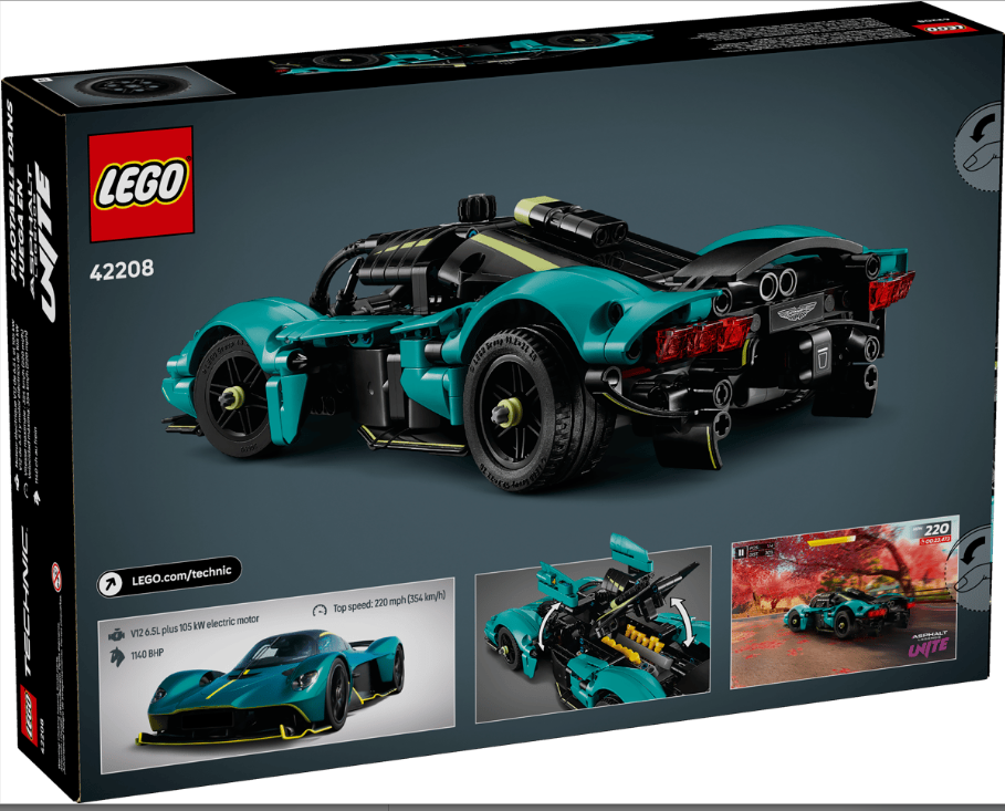 A car model kit for kids aged 9 and up – Let kids and sports car fans build their dream car with this LEGO® Technic™ Aston Martin Valkyrie model, which includes heaps of authentic functions