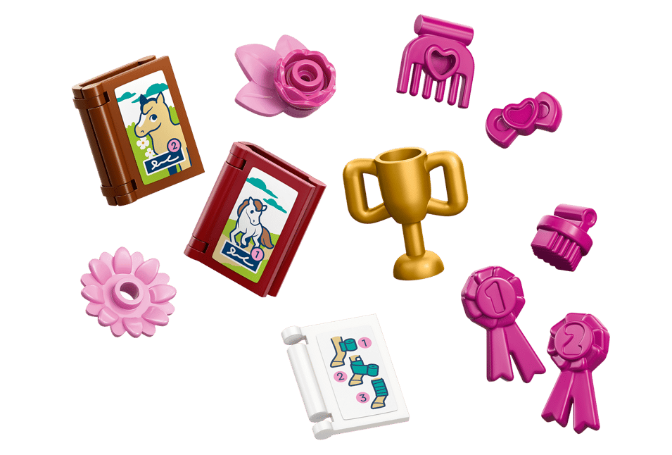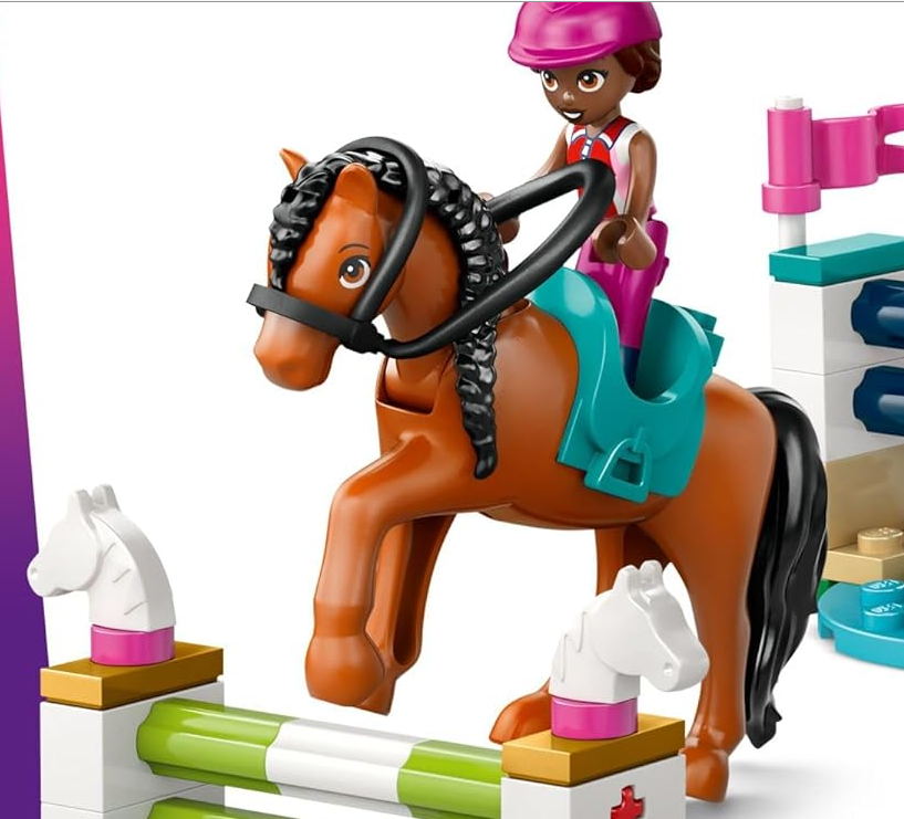 The set includes a horse blanket, jumps, wheelbarrow, hay boxes, carrot, whiteboard, trophies, books, beds and more. This set makes a great horse lover gift for girls and boys who love animal figures and horse toys. With the LEGO Builder app, kids can enjoy an intuitive building adventure where they can zoom in and rotate sets using 3D building instructions, save sets and track progress. Set contains 735 pieces.