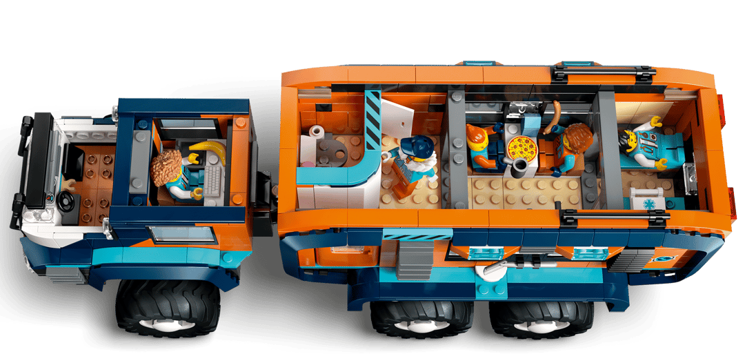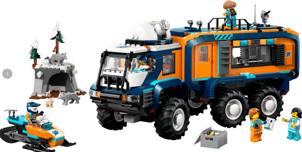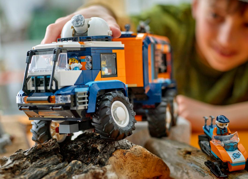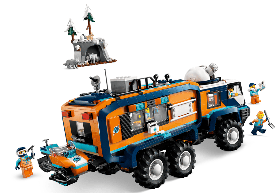 What’s in the box? – Includes a toy exploration truck, snowmobile and Arctic cave scene, plus driver, photographer, scientist, medic and mechanic minifigures and 3 Arctic wolf animal figures