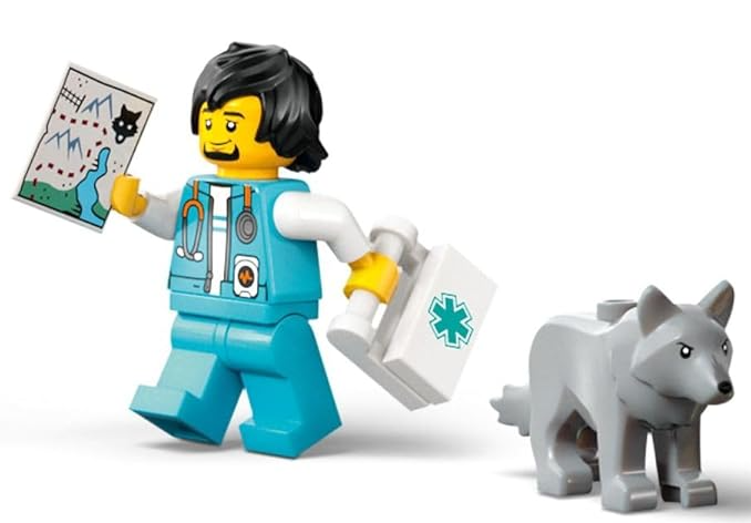 Kids also get a toy snowmobile and an Arctic cave setting, plus 5 explorer minifigures and 3 Arctic wolf animal figures, including a pup, for imaginative play.