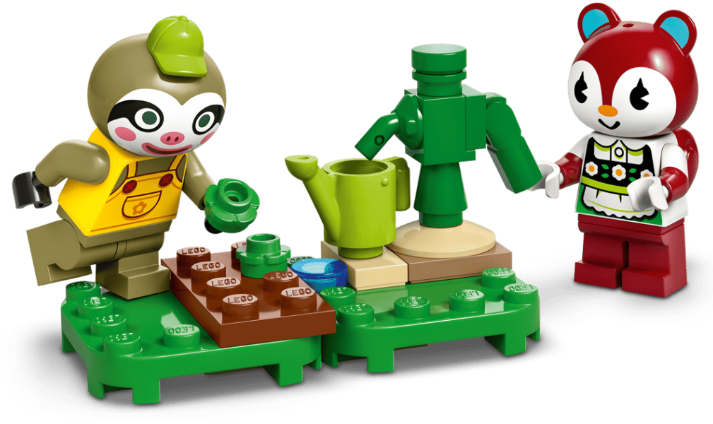 2 LEGO® minifigures from Animal Crossing™ – This garden shop playset includes Leif, a sloth minifigure, and Poppy, a squirrel minifigure, from the video game series
