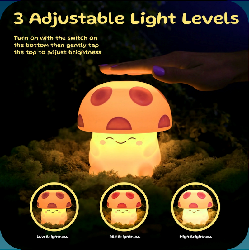 Add a cozy, whimsical vibe to any bedroom, desktop, game night, or party with an adorable mushroom lamp! Tap Mushi’s squishy silicone mushroom cap to cycle through 3 adjustable light levels. You can even activate the 30 minute timer to make sure it shuts off once kids fall asleep. Sure to become a beloved companion, Mushi is built to last and will provide a comforting glow for years to come. USB-C rechargeable, cord included.