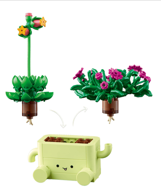 MIX AND MATCH – These plants and pots are compatible with the LEGO® Botanicals Happy Plants (10349) set, sold separately, so kids can create a custom plant display